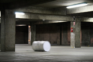Un baril tourne sur lui même et trace des trajectoires dans l'espace. Quand il rencontre un obstacle, il repart, dans la direction opposée.